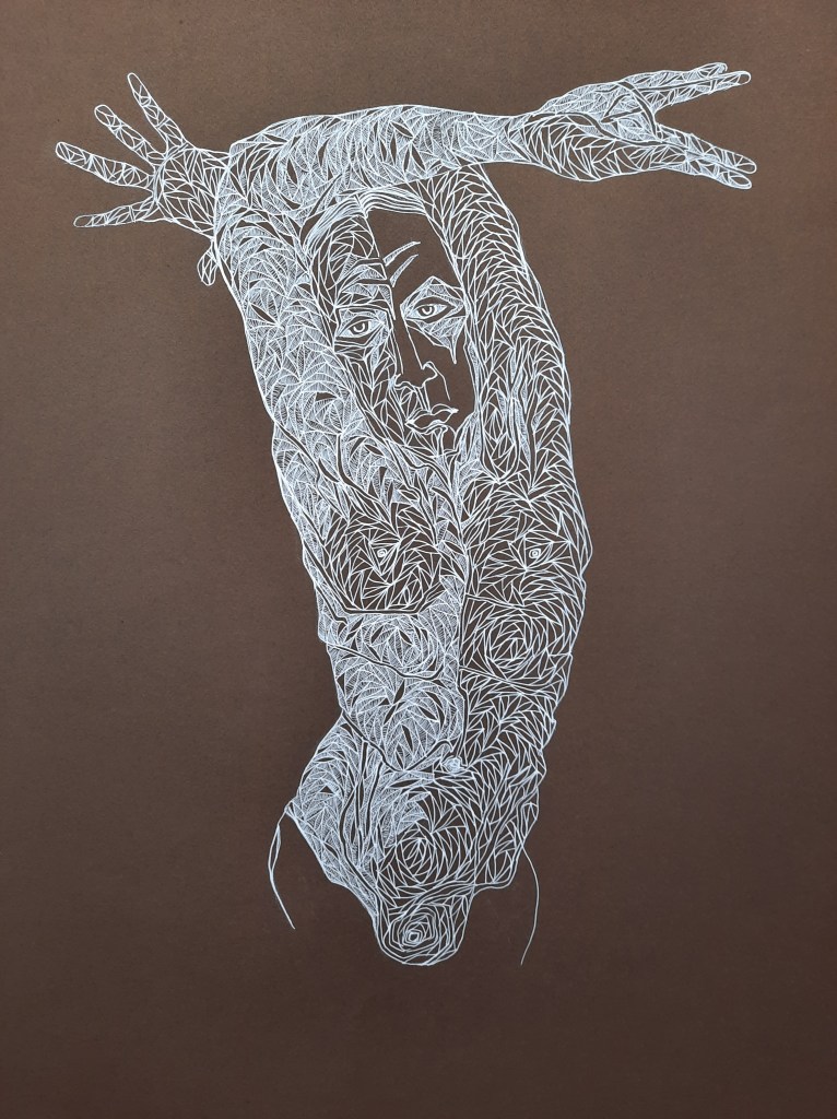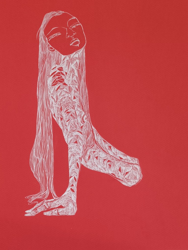 Valentine:Sakura Gel Pen on Daler/Rowney Murano paper.40.6 x30.5cm (Sold)Flutter:Sakura Gel Pen on Daler/RowneMurano paper, 59.4 x 42cm.Mirrored:Sakura Gel Pen on Daler/Rowney Murano paper,40.6 x30.5cmAnna Red: Sakura Gel Pen on Daler/Rowney Murano paper. 40.6 x 30.5cm