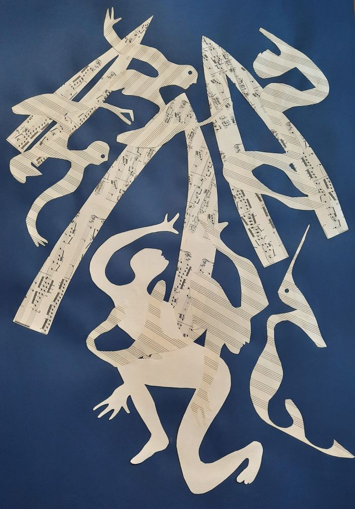 Because this year there were no fireworks: Mixed papers and acrylic ink on Canford paper,42 x 42 cm.Mood Indigo, mixed papers and acrylic ink on Canford paper. 59 x 59cm.